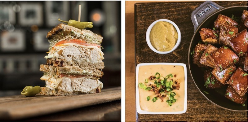 Like breakfast, lunch is available until 2pm daily. They serve salads, sandwiches, burgers, tacos, and lots of classic sides like mac & cheese and, of course, french fries. Share an order of artichoke dip or pretzel bites to start. For an entree, the Turkey Avocado Sandwich with lemon aioli on cranberry walnut bread is a must-try!