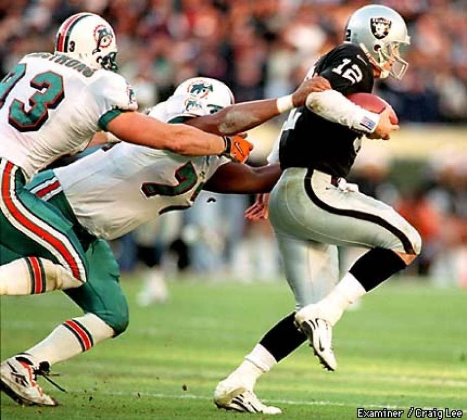 Believe it or not, Marques Tuiasosopo had one of the shortest and one of the worst careers in Raiders' history. It all started when he was drafted by the Raiders in 2001 and while he would remain on the sideline for around two years, he would finally get significant playing time during a Monday Night football game in 2003 where he threw 226 yards in the second half.