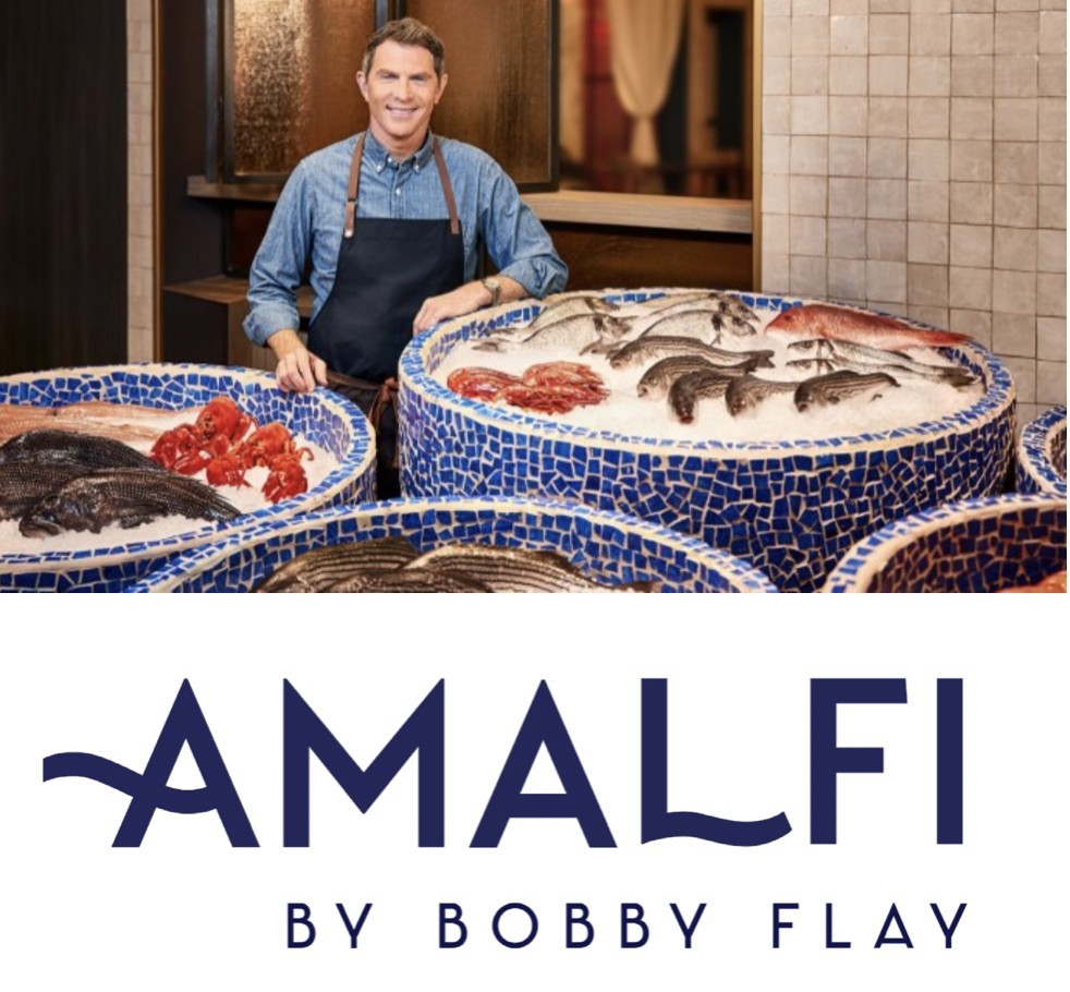 Head to Caesars Palace to try Bobby Flay s newest restaurant, Amalfi. Inspired by Italy s Amalfi Coast, Flay s menu is a mix of Mediterranean and Italian cuisine.