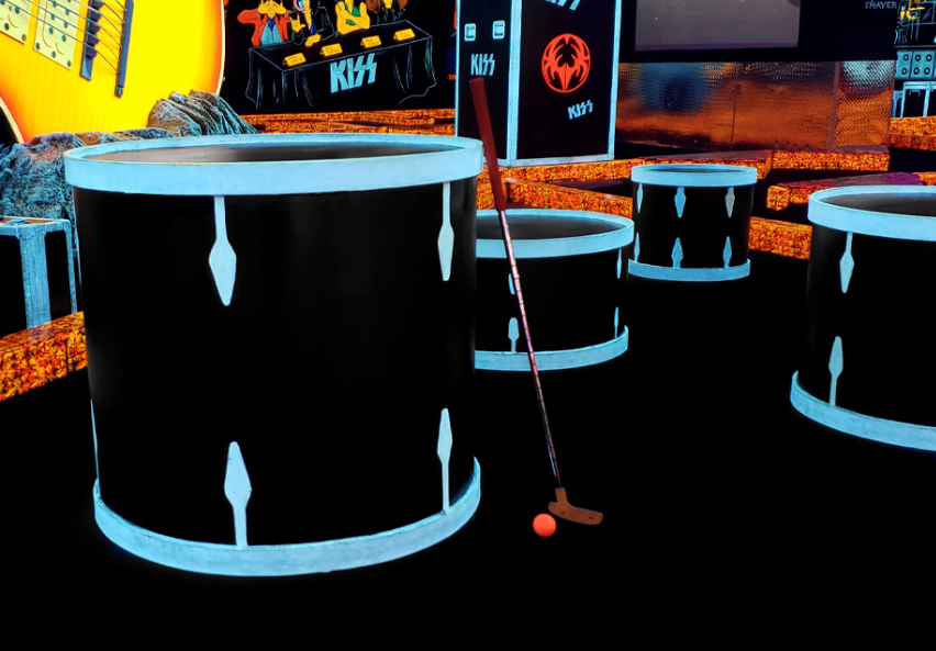 KISS World Mini Golf is a monster-themed indoor golf course inside the recently renovated Rio. The all-in-one entertainment spot lets the entire family play golf in the glow of backlights. Interactive animated monsters, hand-painted artwork, and popular music complete the ambiance.