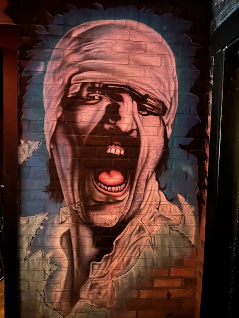 Some of the incredible artwork on the walls of Count's Vamp'd—the Scorpion's Blackout cover.[/caption]