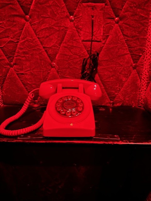 The most stand-out attraction in Vamp’d is the phone booth coffin. The phone is not attached to anything and has no dial tone. “It does ring from time to time, but there's nothing attached, so there's no dial tone. A couple of occasions, I went to go pick it up, and it was just nothing,” Donny tells me as we peer into the coffin.