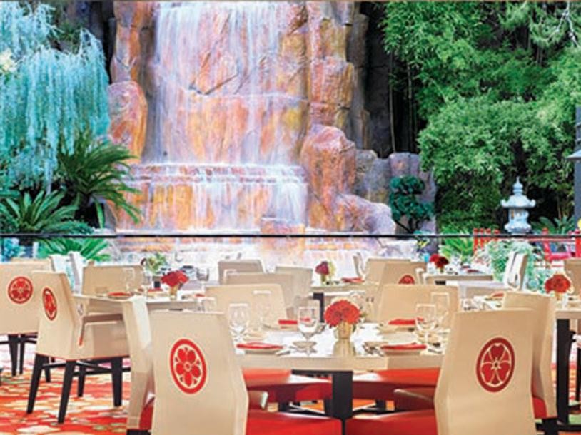 Mizumi is exquisite and overlooks a beautiful 90-foot waterfall that is breathtaking and calming at the same time. You'll love this place if you enjoy sushi. This restaurant's highlight is a floating pagoda table. It is a private space with beautiful and ambient lush gardens.