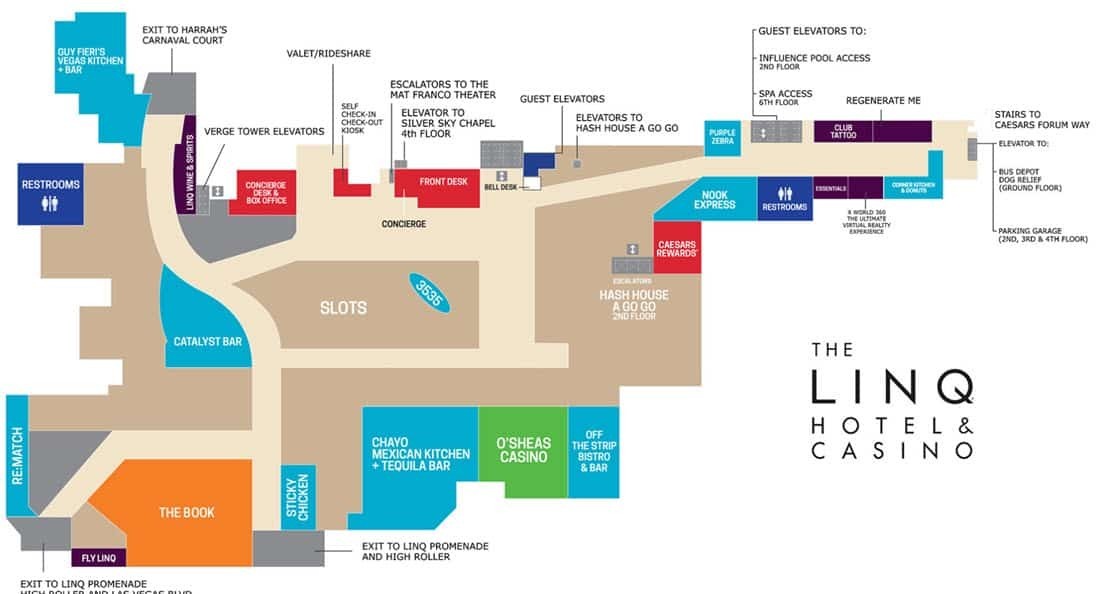 Since The Linq's parking garage is in the far rear of the building and the reservation desk is at the far front, you have to figure out how to get inside, walk through the entire property, stand in an always-lengthy line to receive your keys, then follow a map to your assigned "zone". The desk agent will trace your path through Hotel Hell with a Sharpie. Follow the path very carefully...otherwise, you might not be found for days. Avoid this chaotic mess at all costs.