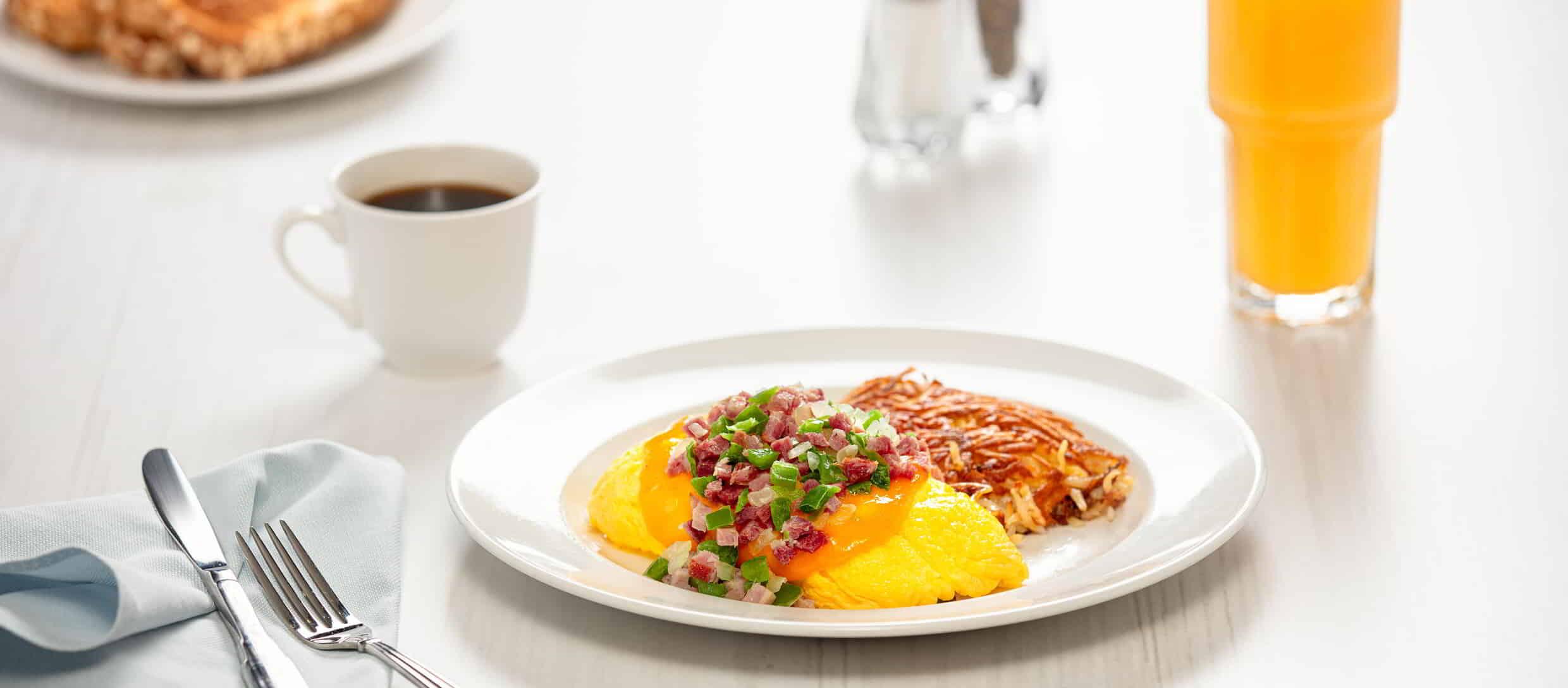 [caption id="attachment_31282" align="aligncenter" width="1024"] Western omelet, orange juice and coffee[/caption]The Pyramid Cafe at Luxor on the Strip serves classic American breakfast recipes for as little as $15. Book a table any day of the week from 7 am to 2 pm and order your favorite pancakes, eggs and toast, waffles, and mouth-watering sandwiches. A double BBQ Bacon Cheeseburger is $19.99, breakfast burritos are $12, and bottomless coffee is $5. And for alcoholic beverages, bottomless bloody mary and mimosas are $20.99, and mojitos are $13. Besides, Pyramid Cafe allows guests with the MGM Rewards Mastercard to redeem their points for discounted breakfast.