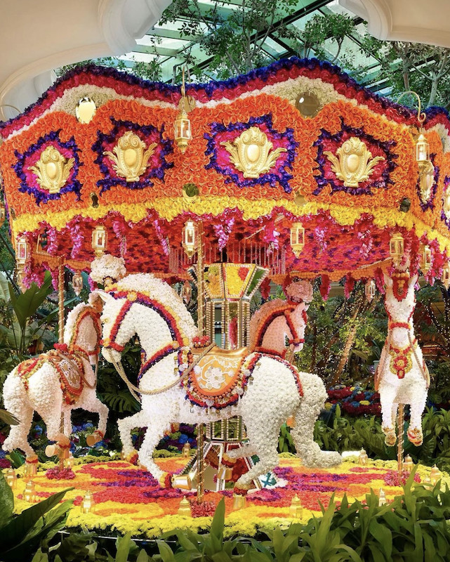 One of the most iconic things to see in The Gardens at The Wynn is the popular Flower Carousel. Created by floral artist, event planner, and world-renowned Hollywood designer Preston Bailey, this stunning art installation is one of the most magical things to see here.