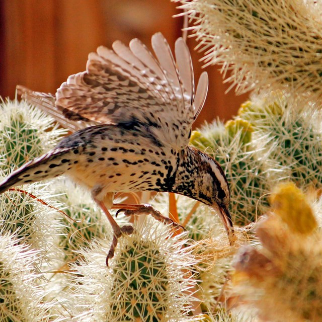 The park hosts various flora and fauna in different regions. The northwest area of the park predominantly hosts Joshua trees. Towards the Eastern side, the vegetation comprises mainly cholla cactus, and other varieties suited for arid areas. There are more shrubs of pinyon pine and California Juniper in the Western region.