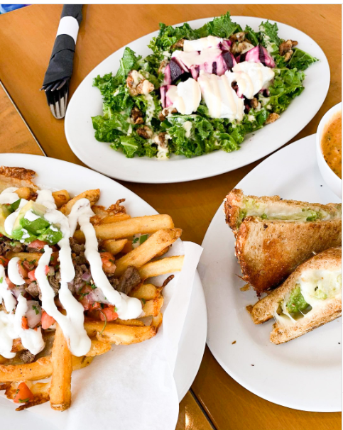 [caption id="attachment_30586" align="aligncenter" width="483"]Asada Fries, Avo Grilled Cheese and Roasted Beef Salad[/caption]