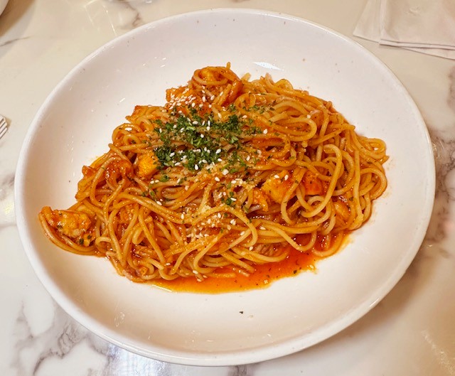 Their angle: all the pastas are attractively priced at only $10.99, except for the “Black Pepper Steak Spaghetti”—a sliced 6 oz ribeye steak, with black pepper sauce—for $12.99. It’s the second best-selling item behind their lasagna.