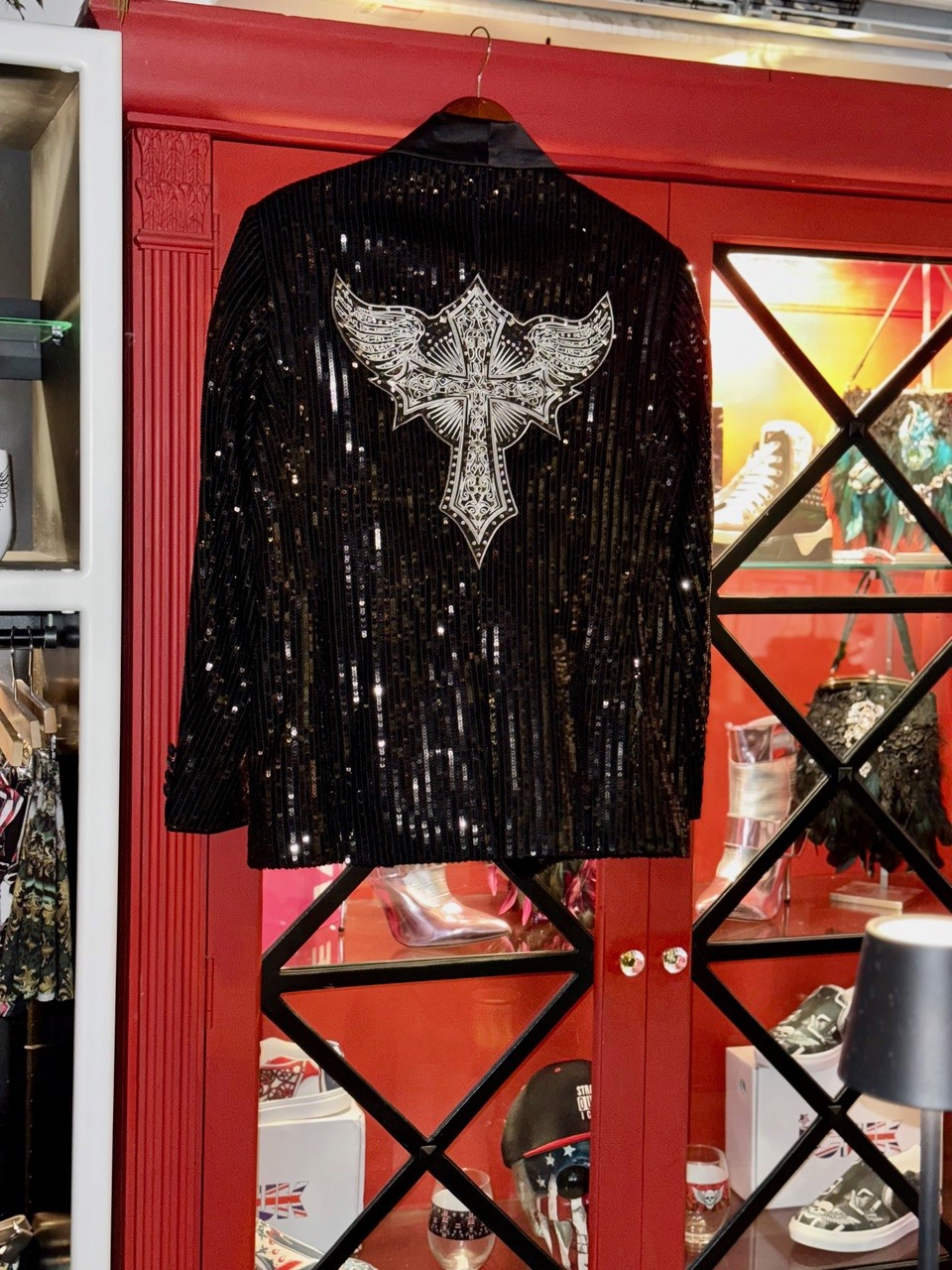 Claire launched ICJUK in 2009 and her clients include such boldface names as Def Leppard’s Joe Elliott, singer Glenn Hughes (Deep Purple), guitar hero Joe Bonamassa, and Vegas bassist-extraordinaire Phil Soussan. “Even Jimmy Page owns a few of my designs from years ago,” she beams. The clothing and accessories here are “wearable self-expression with a side of sparkle, rock-and-roll attitude, and a bit of British soul.”