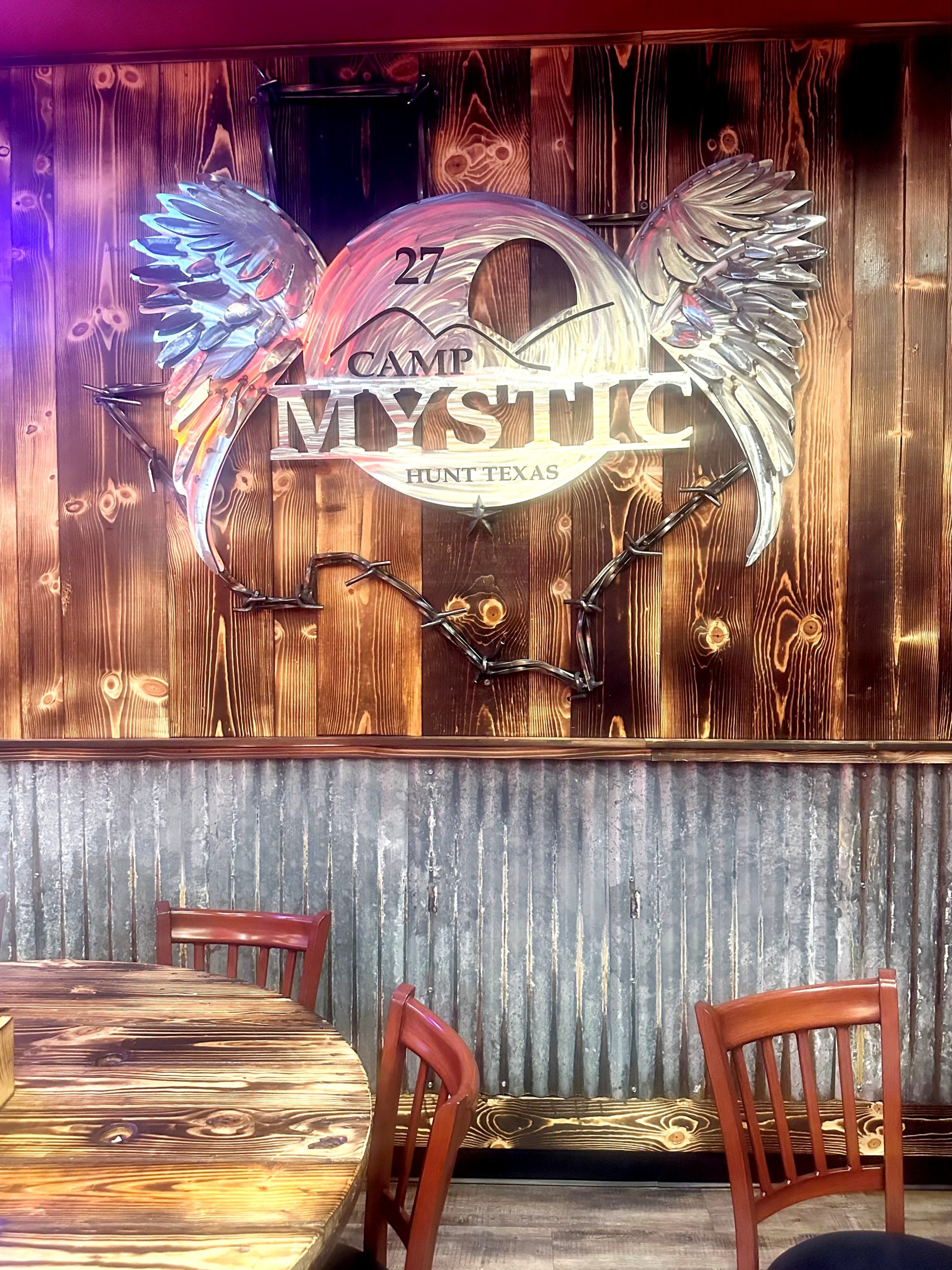 Notably, on the wall here is a memorial piece honoring the 27 Camp Mystic campers and counselors who died recently in the Texas flash flood tragedy. Let it be known—this is a restaurant with a big heart and soul.