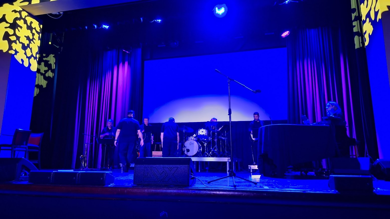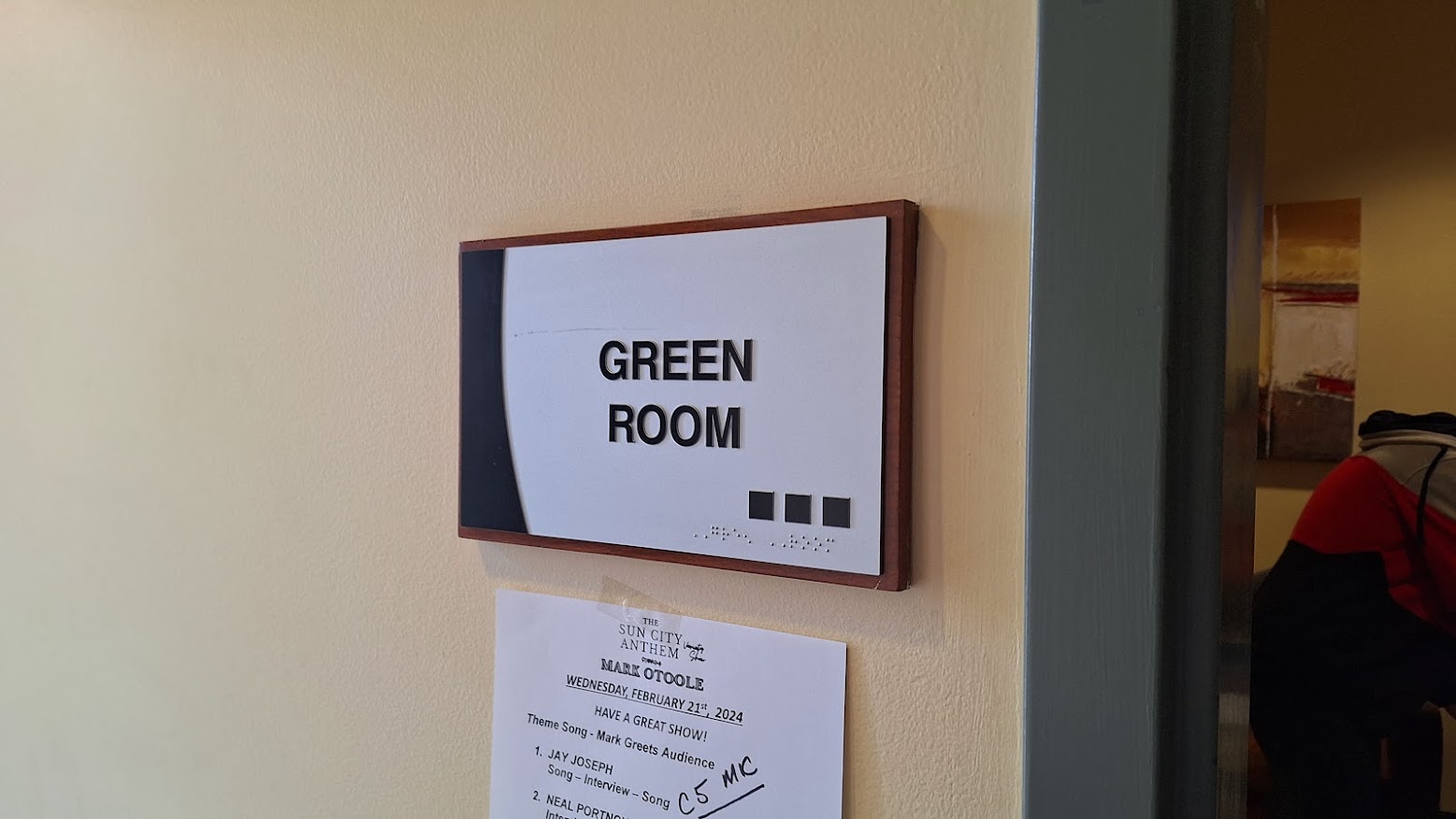 As workers set about their tasks, Mark headed backstage to examine the list of performers. Song choices must be vetted, and performers are expected to send their music charts in advance. Musical director Vita Drew will review them and familiarize the band with their respective parts.