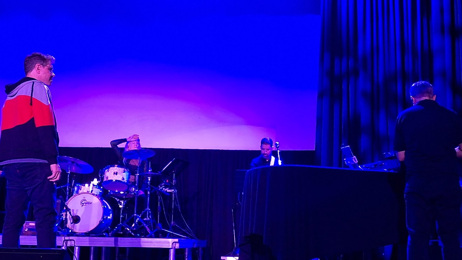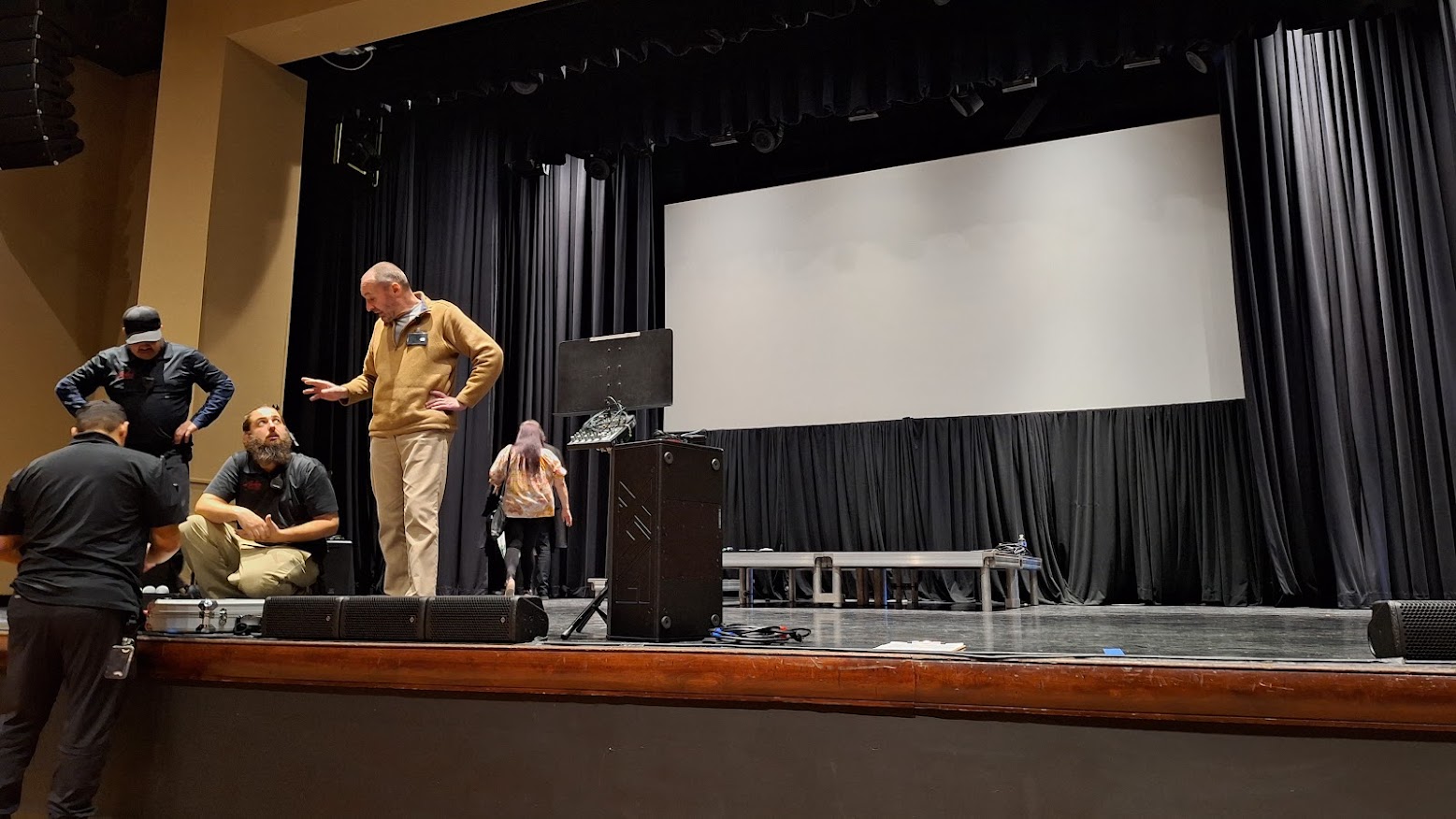 Mark arrives at the venue by noon and begins by overseeing the stage preparations. Each moving part must roll smoothly before the 3 pm start time. On this particular day, the band’s risers were not yet in place, which meant a scramble to assemble them.