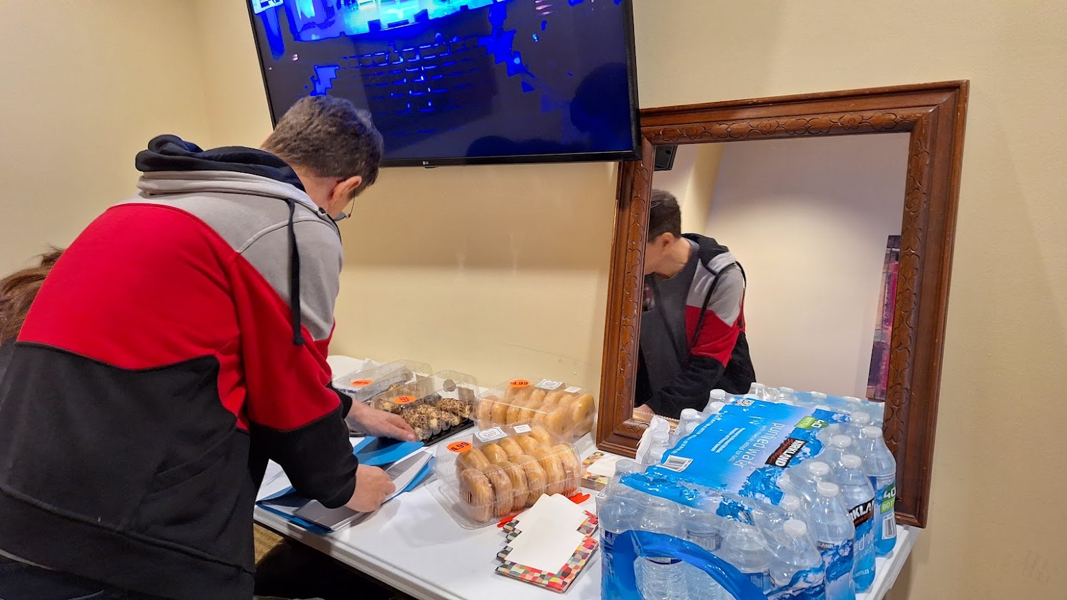 In the second hour of preparations, singers Gabie Lopez and Lorena Peril arrive while Jay Joseph runs through his segment. They wait for him to finish before heading backstage with their dresses and make-up. Once every performer has gone through the process, Mark may choose to shuffle the sequence of guests. Today, he decides to reverse the last two artists and close out the show with vocalist Jordan Lee.
