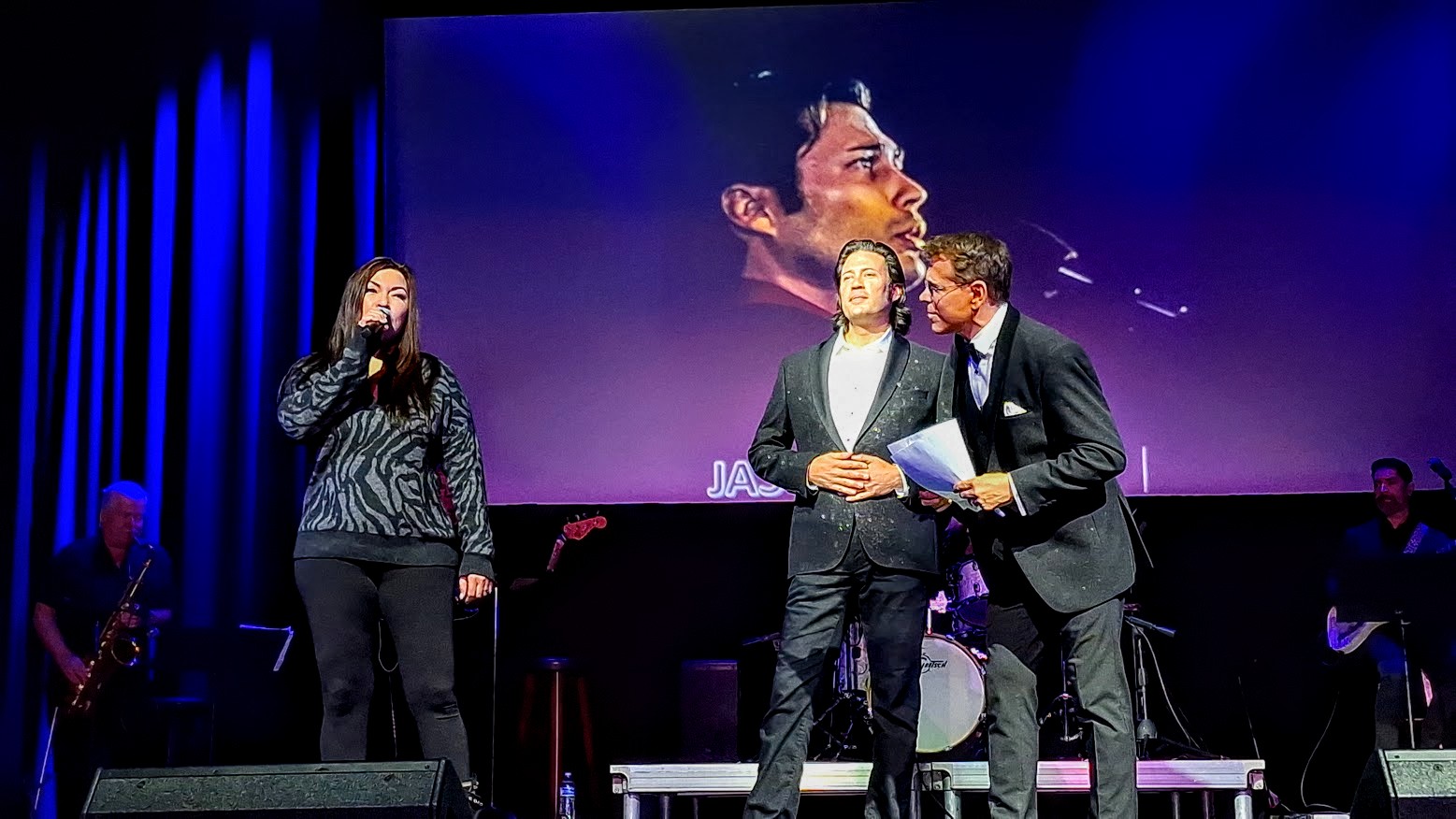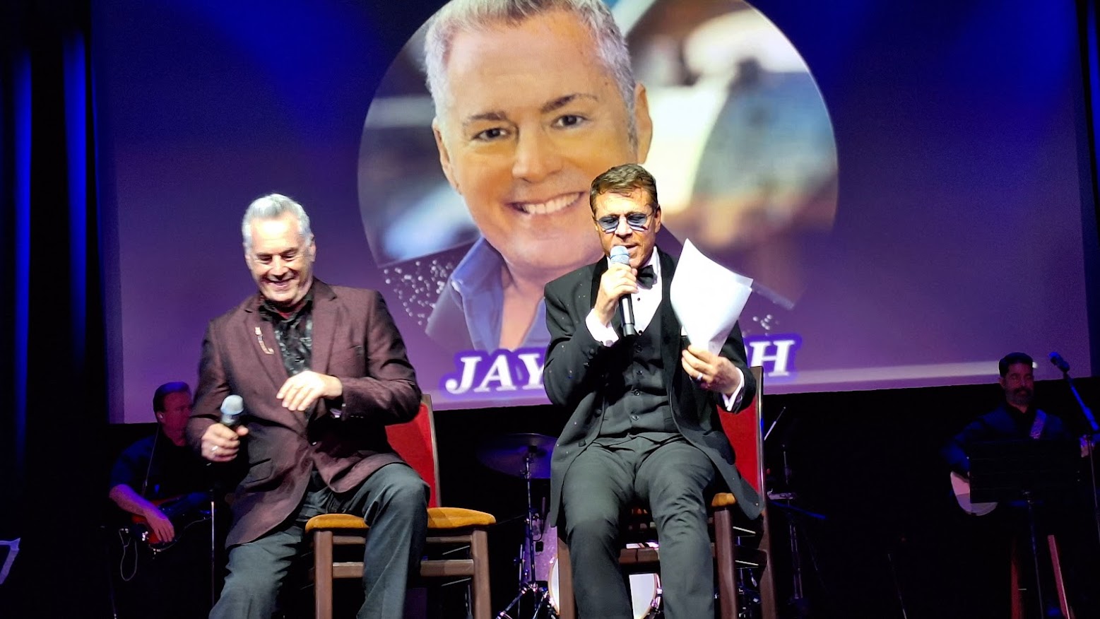 After Jordan’s showstopping finale, the cast returns for final bows. Mark mentions the upcoming two-year celebration and the auditorium clears out. The host thanks everyone for a job well done, and cast and crew shut things down until the next show.
