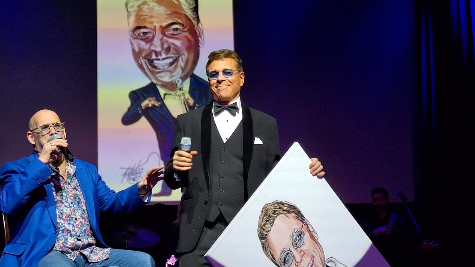 Jay Joseph performs the first musical segment, after which he discusses his background in cruise shows and mystery dinner theater. He’s followed by Neal Portnoy, a departure from the usual song-and-dance pros. The artist, who’s skilled as a radio co-host with Ron Garrett, proves he’s as skilled on the microphone as with a felt-tip marker.