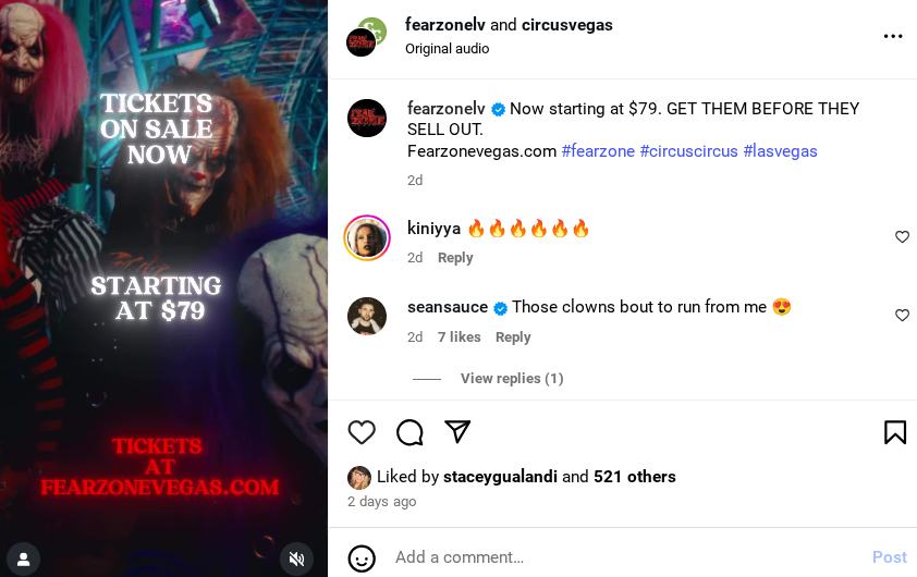 We’ve also learned that tickets for FEAR ZONE are selling at an anemic pace. The event requires all admissions to be paid for in advance, and no tickets will be sold at the door. Ten-dollar discount coupons are being touted, and the base rate has also been reduced from $89.99 to $79.99.